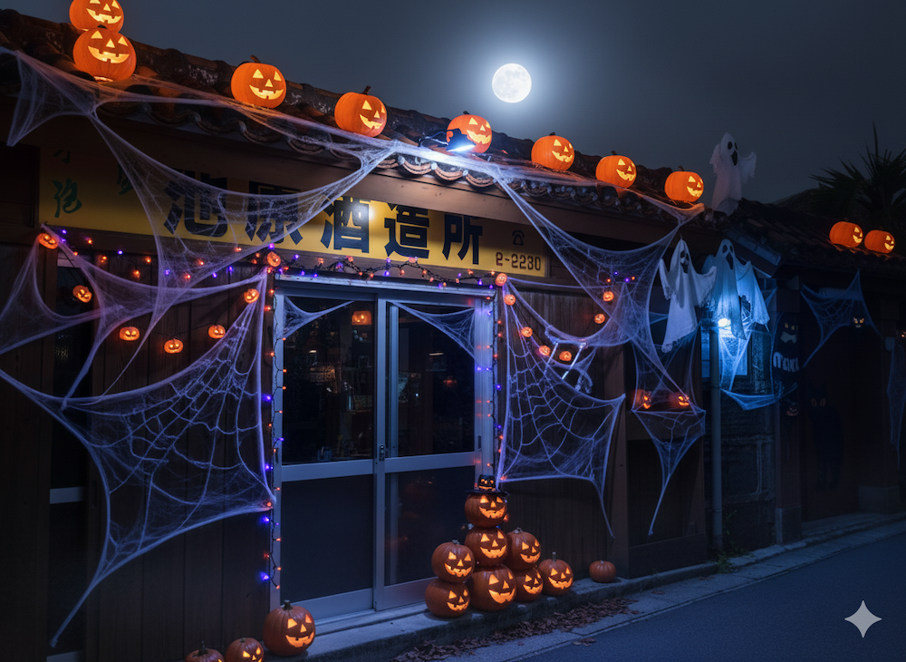 もうすぐハロウィンですね♪今回のアイキャッチ画像は、AIで作成した池原酒造×ハロウィンのイメージ画像です(^^)